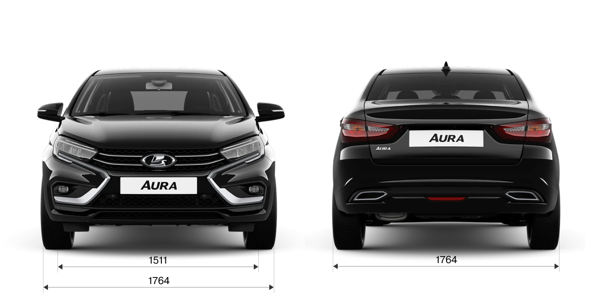 LADA Aura — бизнес-седан, сочетающий габариты С-сегмента и вместительность класса D, ориентированный прежде всего на пассажиров, их комфорт и статус. Стройный силуэт удлинённого кузова на крупных колёсах формирует уникальные пропорции автомобиля, которые подчёркивают его предназначение.