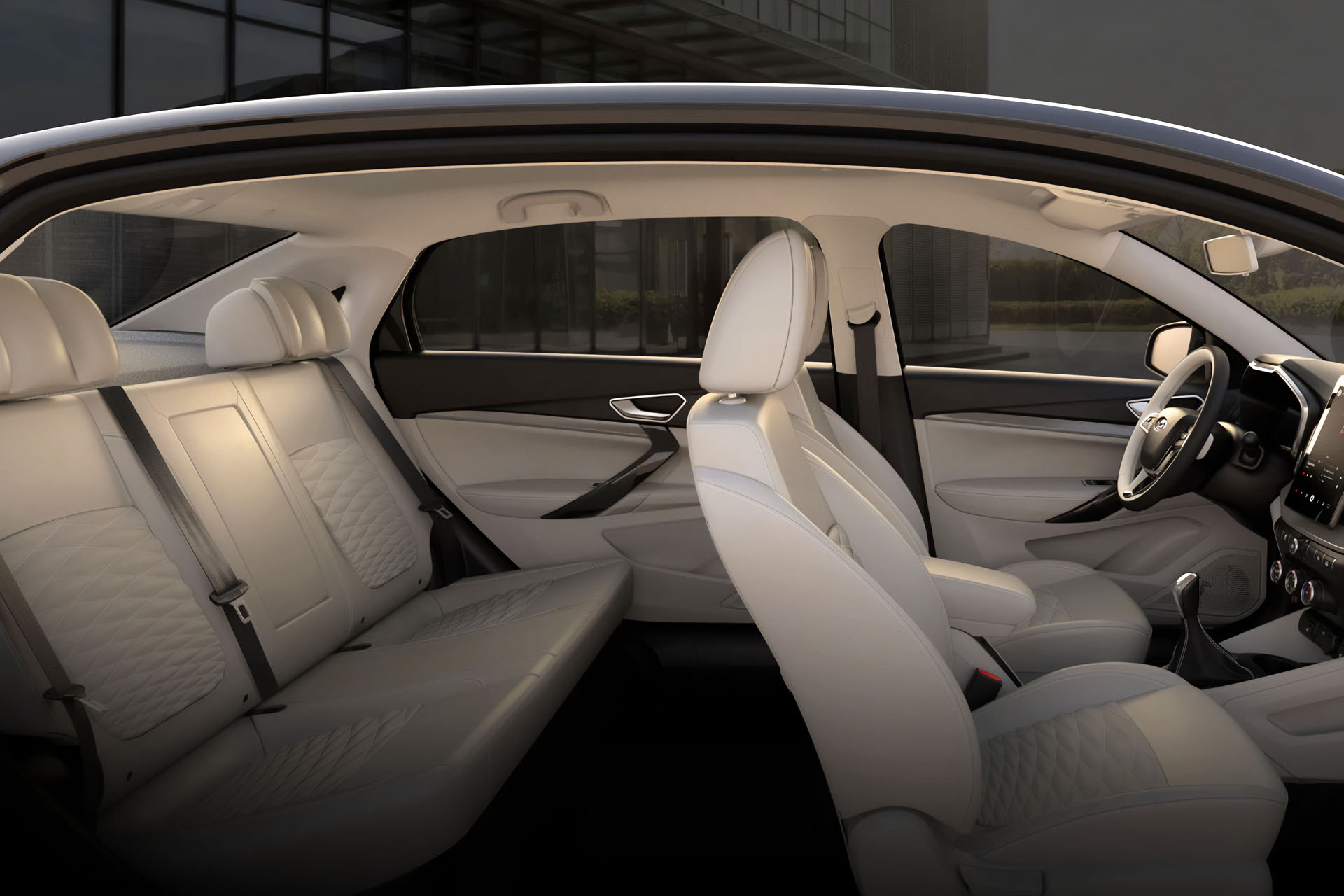 Больше воздуха и света. Больше энергии и мыслей. Больше свободы и возможностей. Каждый элемент салона говорит об особом исполнении: комфортный задний диван, натуральная кожа сидений и обивки руля, накладки на педалях, облицовка порогов с названием модели… А расстояние от передних кресел до заднего сиденья увеличено на 25 сантиметров — и это лучший показатель в классе!